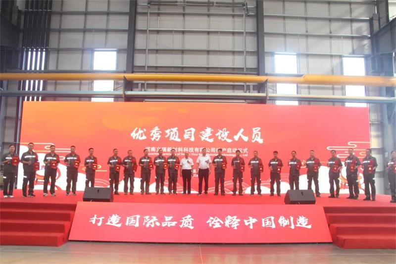 儀式上,總經(jīng)理劉杰向長期以來關(guān)心支持明泰發(fā)展的各級黨委、政府,向各參建單位表示衷心的感謝,向在明泰鋁業(yè)高質(zhì)量發(fā)展過程中取得“功勛集體”榮譽的項目部全體員工表示熱烈的祝賀。明泰鋁業(yè)堅持“創(chuàng)新、綠色、智慧、開放”的發(fā)展理念,踐行“高端制造+低碳經(jīng)濟”雙驅(qū)動戰(zhàn)略,完成了明泰科技、明晟新材以及義瑞新材等幾個重要項目,在逆勢中鞏固了明泰的行業(yè)優(yōu)勢,標(biāo)志著明泰鋁業(yè)在高質(zhì)量發(fā)展的道路上,又向前邁出了一大步。義瑞新材以58億元總投資,旨在打造“高端+綠色+智慧”一體化生產(chǎn)制造體系,是明泰鋁業(yè)單體投資最大的一個項目。項目建設(shè)充滿挑戰(zhàn),我們抗擊了“7.20”特大洪災(zāi),克服了新冠疫情影響,突破了項目技術(shù)難題,處置了建設(shè)突發(fā)情況,全體參建人員患難與共,確保了項目按時按質(zhì)順利實施。整個項目在不到10個月的時間里,就建成現(xiàn)代化標(biāo)準(zhǔn)廠房15萬平方米,各主要設(shè)備按時安裝到位,實現(xiàn)項目順利投產(chǎn)。未來,我們要把企業(yè)打造成為技術(shù)創(chuàng)新示范企業(yè)、綠色轉(zhuǎn)型引領(lǐng)企業(yè)、智能制造標(biāo)桿企業(yè)和開放發(fā)展先鋒企業(yè),堅定“項目為王”理念,通過建項目來擴產(chǎn)能、通過建項目來提質(zhì)量、通過建項目來促轉(zhuǎn)型,實現(xiàn)企業(yè)高質(zhì)量發(fā)展,為地方經(jīng)濟社會發(fā)展貢獻力量,為行業(yè)發(fā)展增光添彩!
